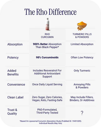 I take a teaspoon of Rho Curcumin + Resveratrol in the afternoon to help support a healthy inflammation response, improve my immune system and support healthy aging on a cellular level.