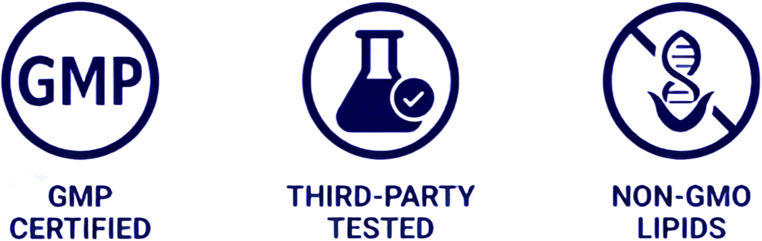Nutrients are enclosed within liposomes—tiny, lipid-based spheres designed to protect active ingredients.
